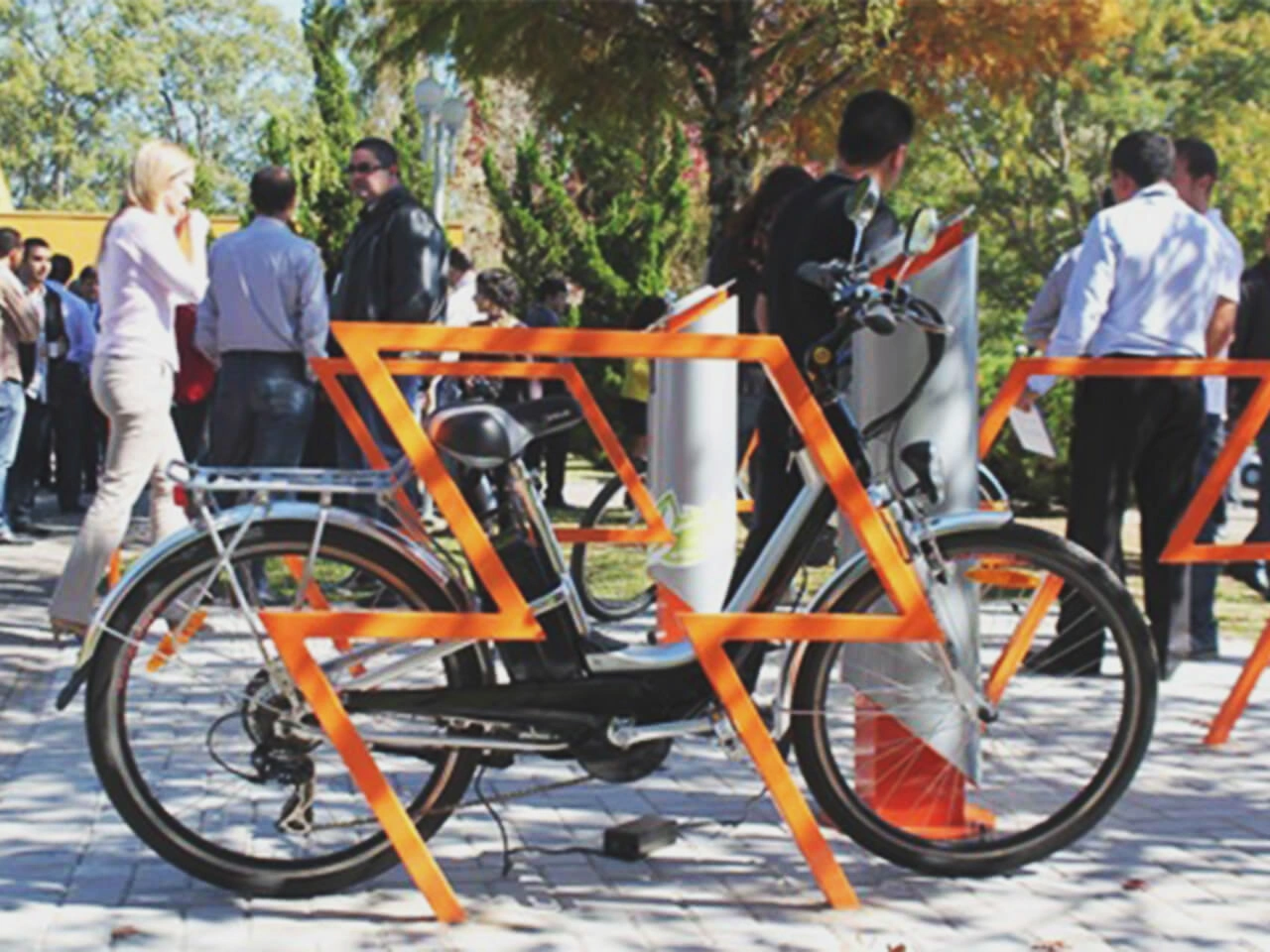 Encontramos o equilíbrio perfeito entre design e funcionalidade com a Bike Fácil. Em um ambiente de supermercado, assegurar o quadro da bicicleta era essencial — especialmente quando as rodas tinham travas de liberação rápida.